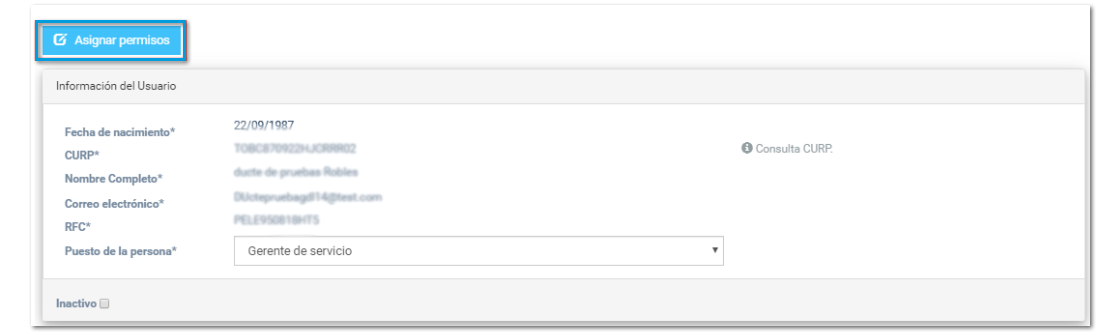 Ingresa al usuario y presiona el botón Asignar permisos.