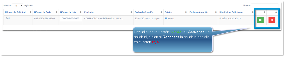 Aprobado: Aceptaste la solicitud y la serie se asignó al distribuidor que la solicito.