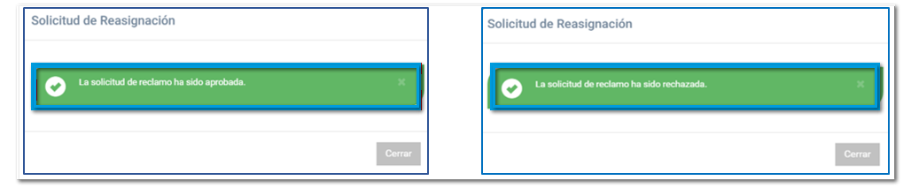 Si Apruebas o Rechazas la solisolicitud se mostrarán los siguientes mensajes: