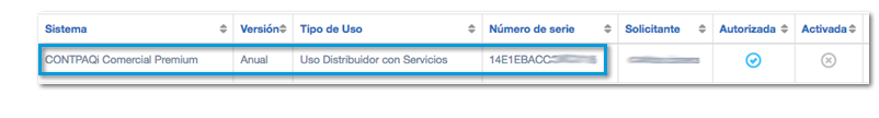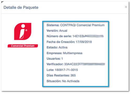 Al generar una serie se puede ver el detalle de dicha serie, el detalle muestra los datos necesarios para activarla, así como sus características.