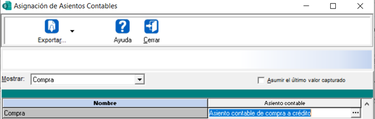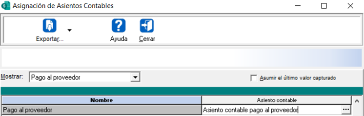 Asignación de los asientos contables a los conceptos