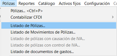 Ingresa al menú Pólizas y elige la opción Listado de pólizas.