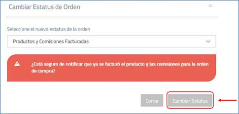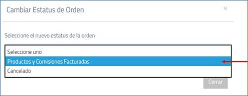 CONTPAQi® da seguimiento al trámite del pago con apoyo del departamento de Tesorería a las órdenes de compra con el estatus de Productos y Comisiones Facturadas, y cambia el estatus por CONTPAQi® depositó de la Orden de Compra factura y utilidad.