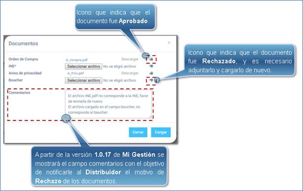 Para conocer si los documentos fueron aceptados o rechazados por CONTPAQi®, el Socio de Negocio valida en la opción Cargar documentos.