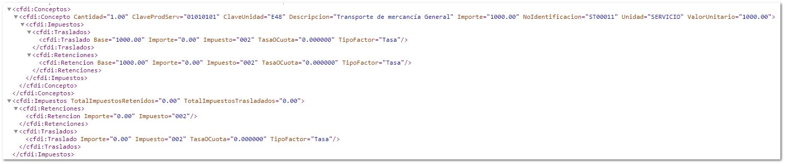 A partir de ahora, el XML del CFDI de Ingreso con complemento Carta Porte se incluirán en los Nodos de impuestos retenidos y trasladados el IVA al 0% y/o Retención de IVA al 0%.