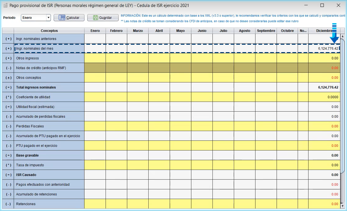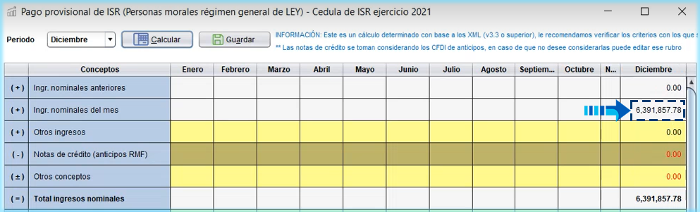 El Artículo 14 de la Ley del Impuesto sobre la renta, indica que la utilidad fiscal para el pago provisional se determinará multiplicando el coeficiente de utilidad que corresponda, por los ingresos nominales del periodo (sin considerar los egresos o descuentos de los comprobantes).