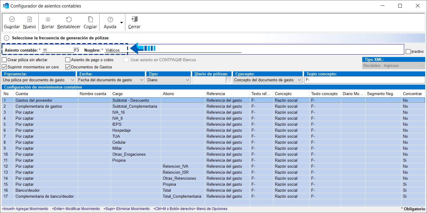 CONTPAQi® Contabilidad, ahora cuenta con un nuevo asiento contable que podrás utilizar para contabilizar tus documentos de gastos generados en CONTPAQi®Viáticos y configurarlo según tus necesidades.