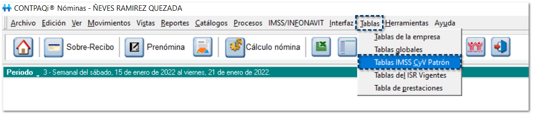 A partir de ahora, al ingresar al menú Tablas, podrás seleccionar el submenú Tablas IMSS CyV Patrón: