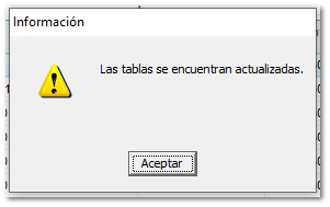 Una vez que las tablas se hayan actualizado de manera correcta, se mostrará el siguiente mensaje: