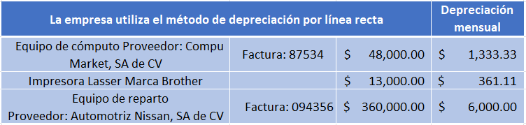 El 1 de diciembre de 2022 se compra computadora, impresora y equipo de reparto, todos con una vida útil de 5 años: