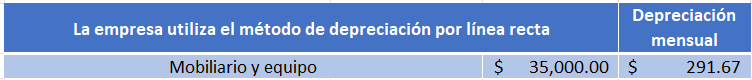El 1 de diciembre de 2022, se compra Mobiliario y Equipo, por $35,000 mas IVA de contado con una vida útil de 10 años