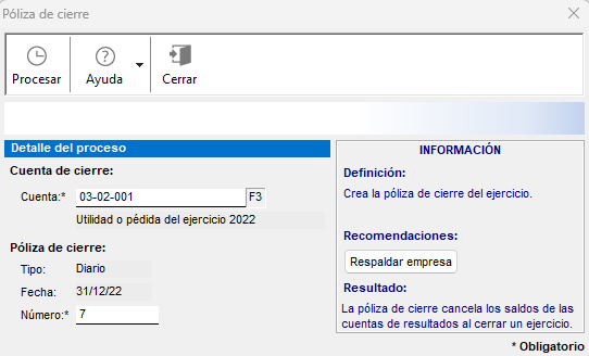 Antes de hacer el proceso de cierre realiza un respaldo de tu información .