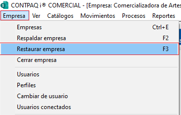 Ingresa al menú Empresa y elige la opción Restaurar empresa: