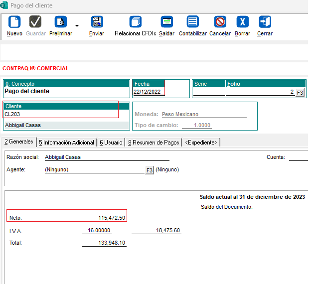 Ingresa al menú Movimientos/Clientes/Abonos del cliente/Pago del cliente
