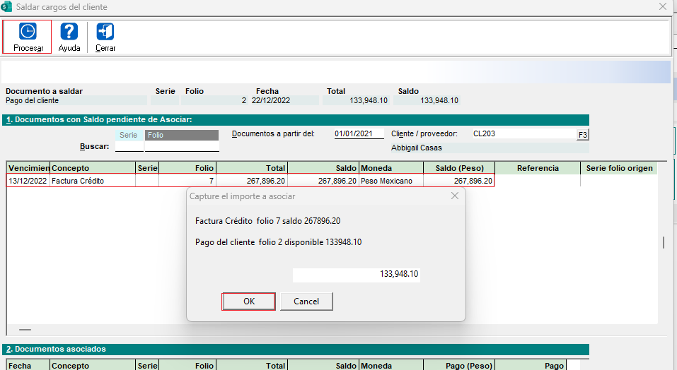 Asocia el pago a la factura