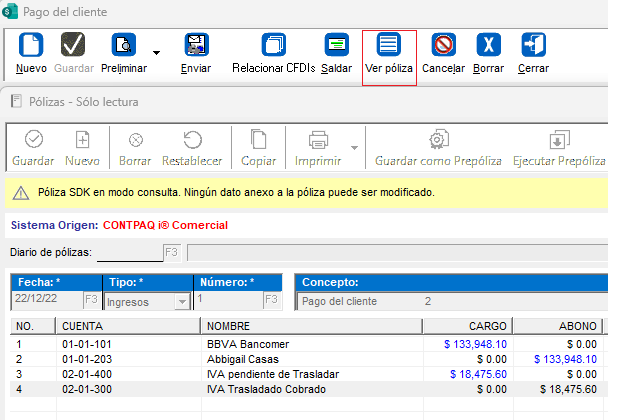 Clic en el botón Ver Póliza