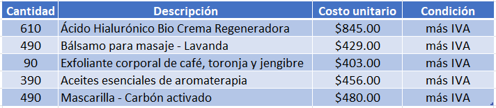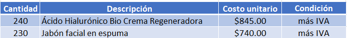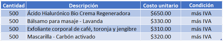 El 23 de diciembre de 2022, el vendedor Rodrigo Rojas realiza una venta de contado al cliente Comercializadora Nature Skin SA de CV por el siguiente concepto: