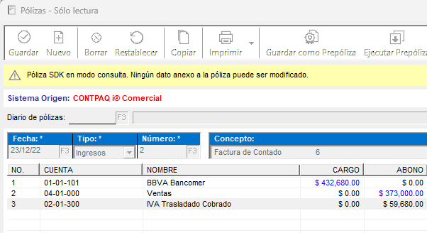 Clic en el botón Contabilizar