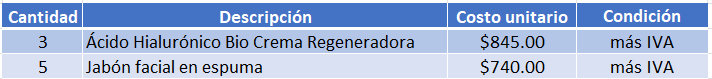 El 23 de diciembre de 2022, el vendedor Rodrigo Rojas realiza una venta de contado al cliente Abbigail Casas por el siguiente concepto: