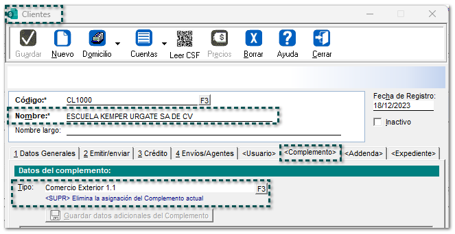 Primero, asigna el Complemento Comercio Exterior 1.1 a tú "cliente":