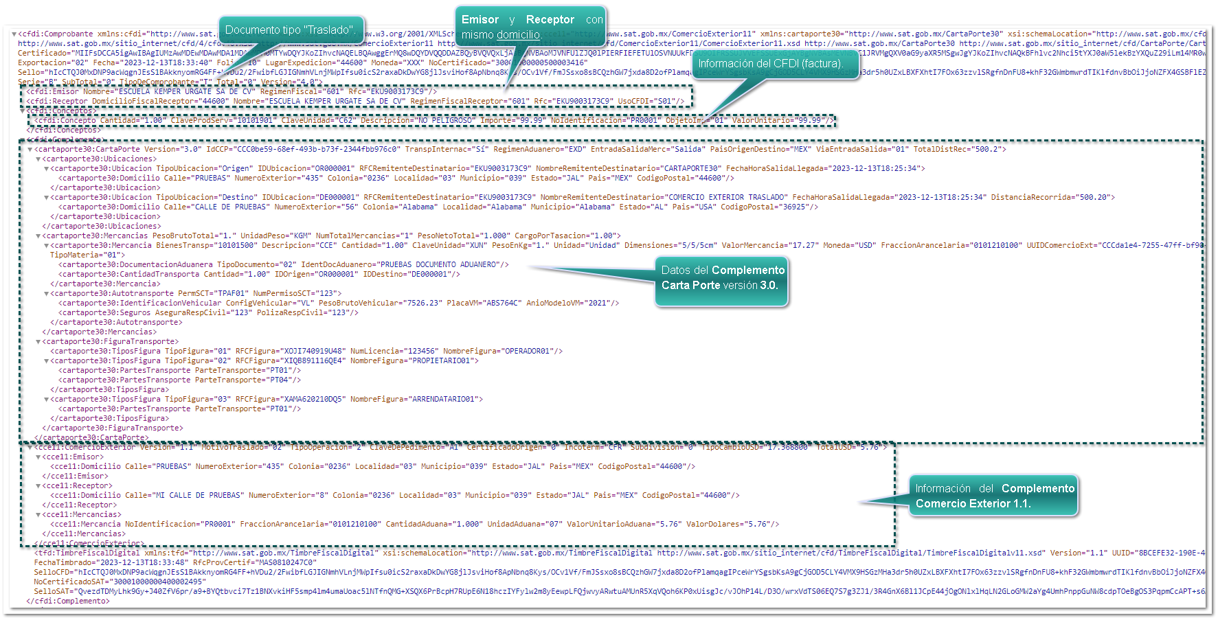 Carta Porte 3.0 tipo Traslado con "Autotransporte" y Complemento Comercio Exterior 1.1