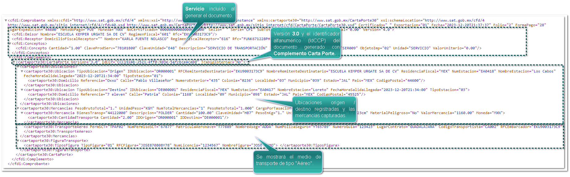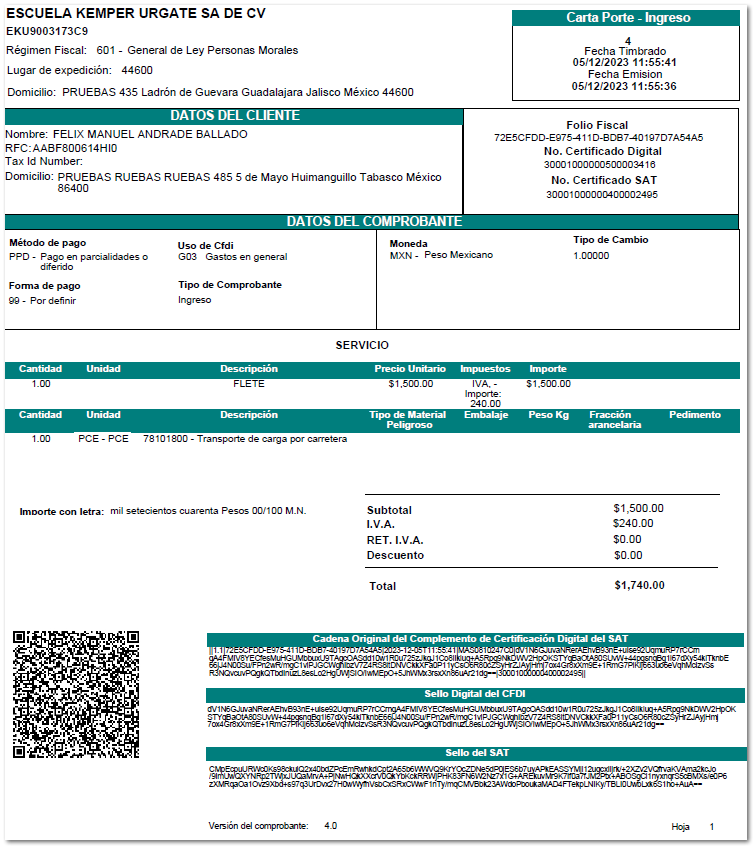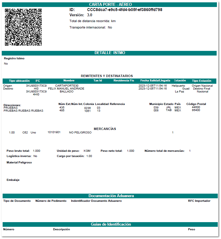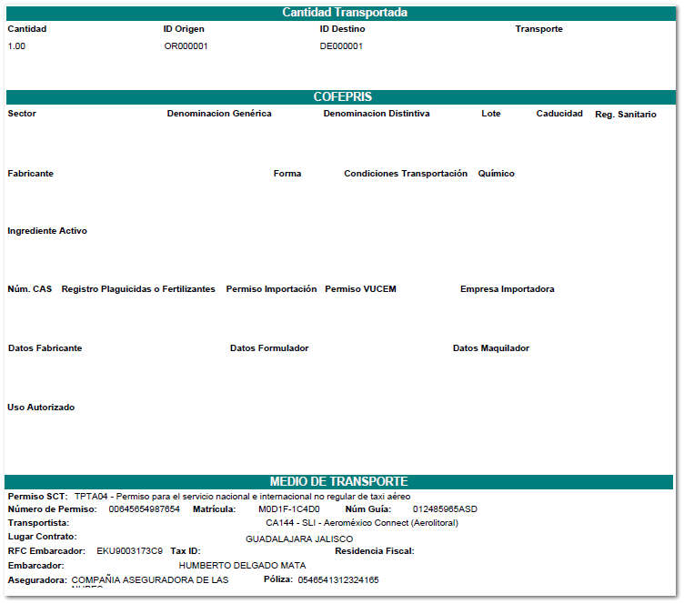 Ejemplo PDF, con la plantilla "Carta_Porte_CFDI_v3_Ingreso_Aereo.rdl"