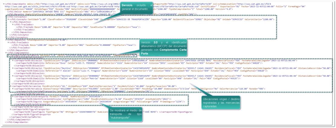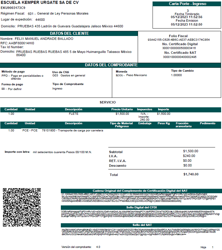 Ejemplo PDF, con la plantilla "Carta_Porte_CFDI_v3_Ingreso_Autotransporte.rdl"