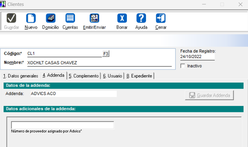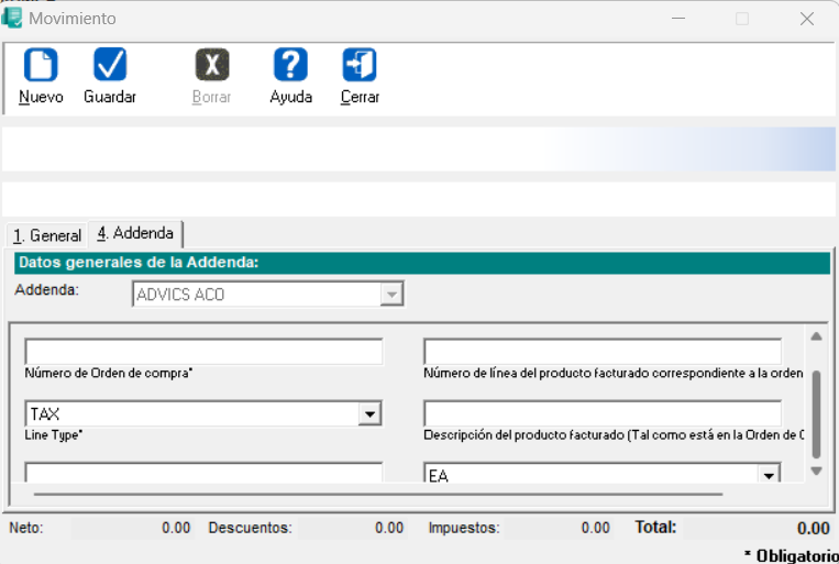 Nueva Addenda "ADVICS ACO"