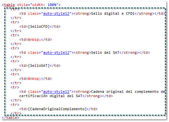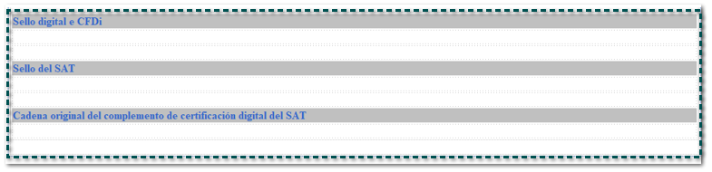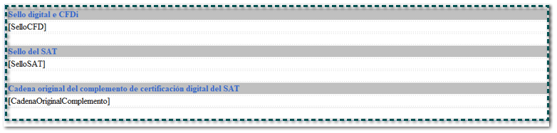 Ahora, captura las etiquetas: [SelloCFD], [SelloSAT] y [CadenaOriginalComplemento] debajo del texto que les corresponde: