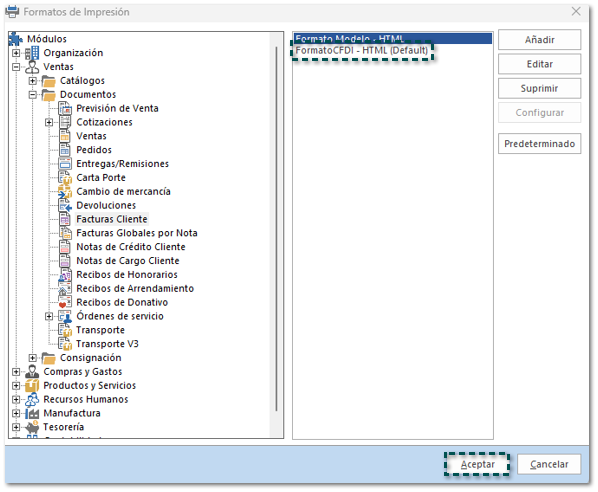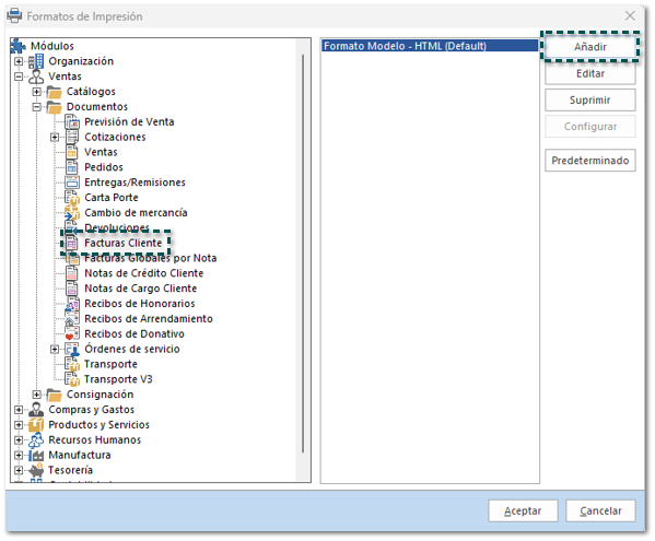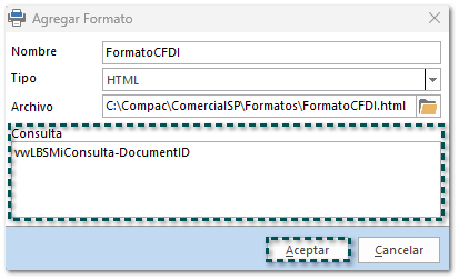 Configurar consulta en Formatos de Impresión