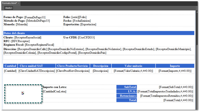 El código de barras bidimensional se insertará como una imagen HTML.