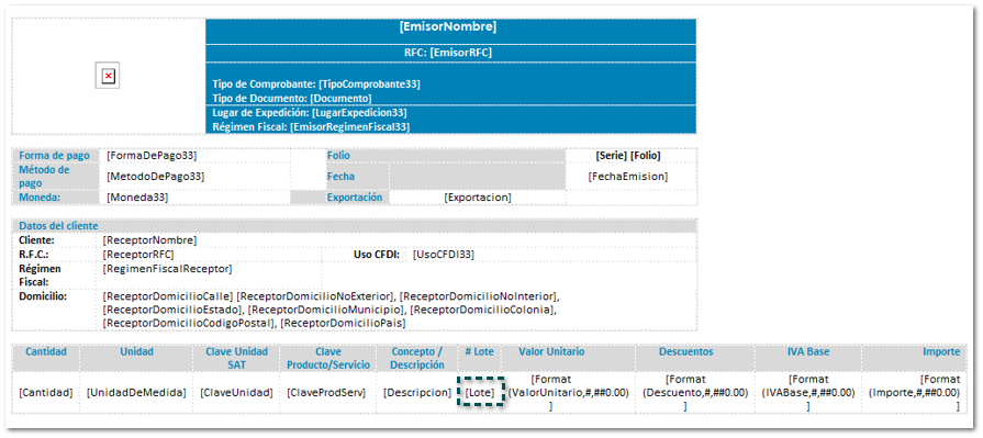 Deseas que tu formato muestre el valor de la referencia Lote dentro del detalle; en tu formato deberás agregar la referencia de siguiente manera [Lote].