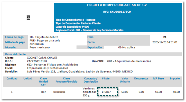 Al consultar los datos e un documento podrás ver que se muestra el valor de lote del producto correspondiente: