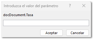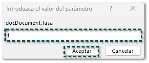 En la siguiente solicita el dato docDocument.Tasa lo cual no es correcto, asigna el número 1, y haz clic en Aceptar para continuar.
