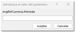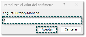 ![]() En ocasiones pide un tercer dato engRefCurrency.Moneda, tampoco es correcto, asigna el número 1, y haz clic en Aceptar para continuar.
