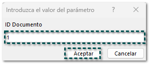 Se mostrará la siguiente ventana en la que solicita el dato ID Documento, agrega el número que deseas visualizar, y haz clic en Aceptar.