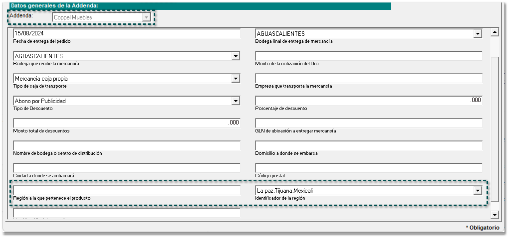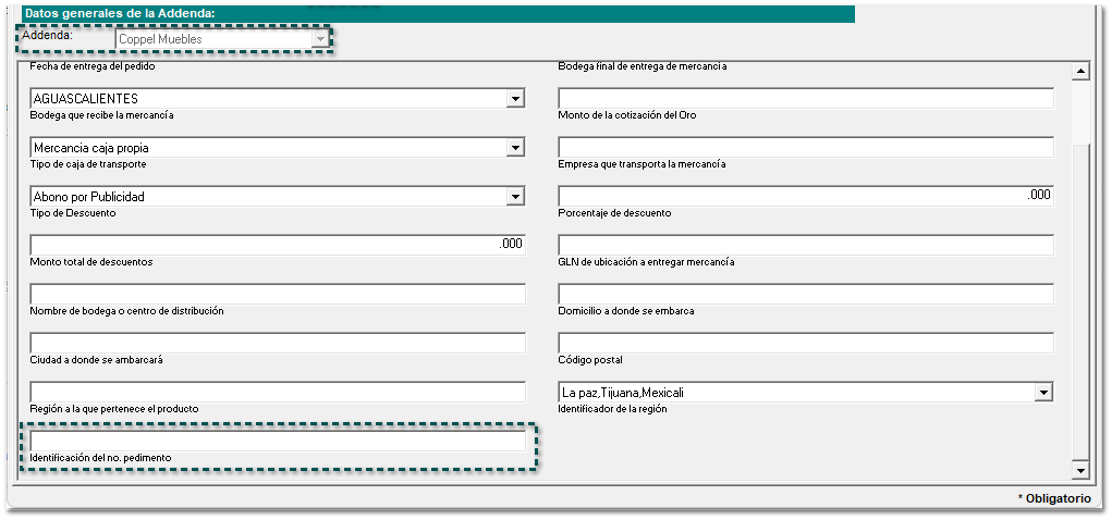 Ahora, se realizan las siguientes modificaciones en la Addenda Coppel Muebles: