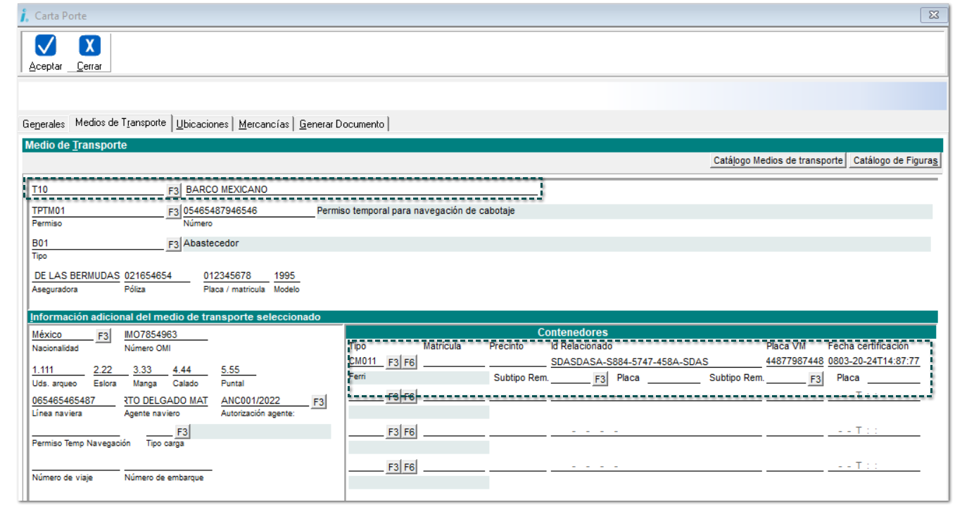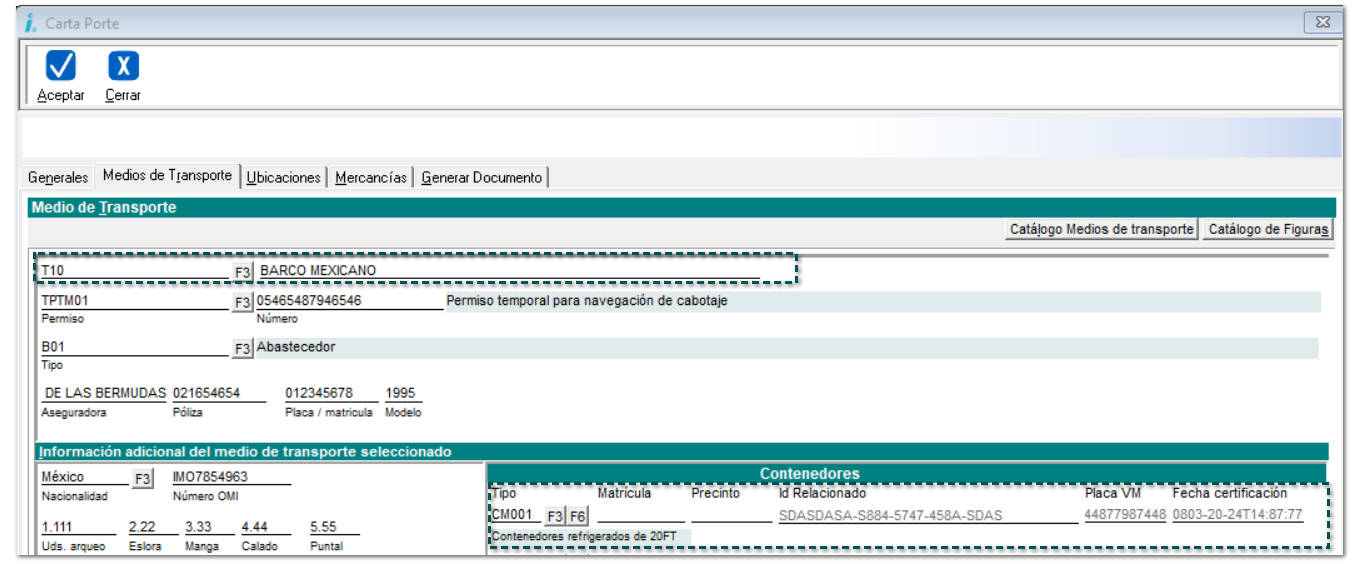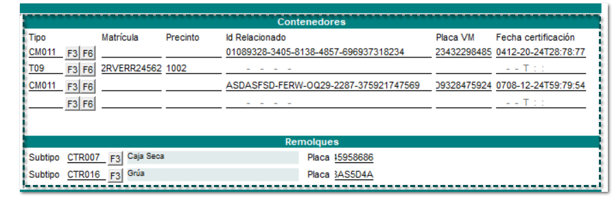 Cuando no se asigne un tipo de Contenedor de Tipo "Ferri", no se habilitará la sección para capturar la información de los Remolques.