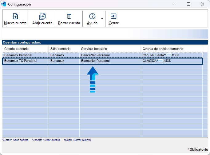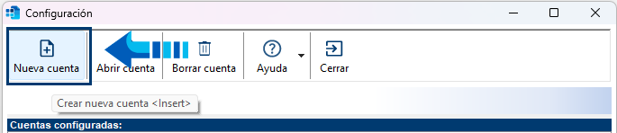 Dentro de la ventana de configuración del portal bancario, haz clic en el botón "Nueva cuenta".