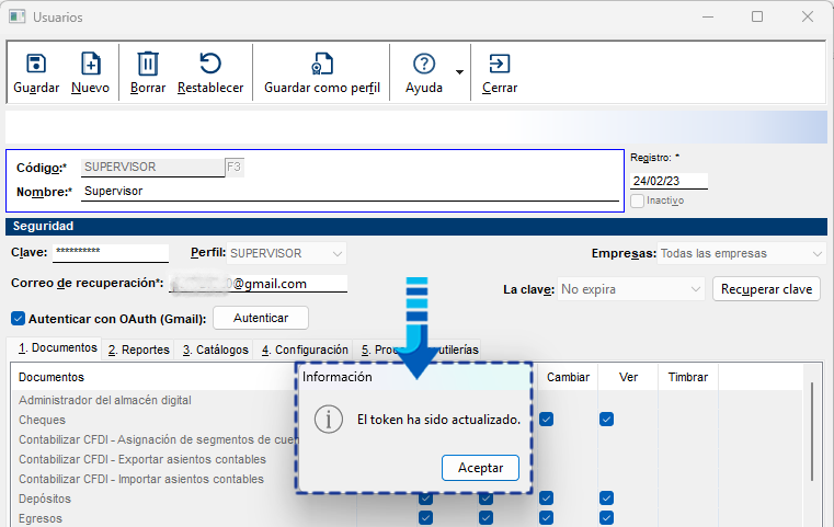 Dentro del catálogo de usuarios podrás actualizar el token realizando nuevamente la autenticación con OAuth.
