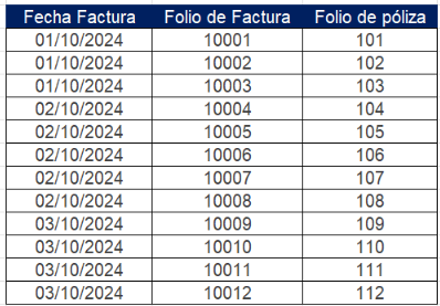 Orden consecutivo y cronológico de números de póliza por fecha, serie y folio
