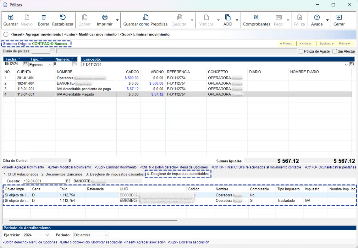 Reestructura de impuestos desde CONTPAQi® Bancos CONTPAQi® Bancos también está preparado para la identificación, desglose y almacenamiento de los impuestos que se incluyen en los CFDI asociados, por lo que al generar tus documentos bancarios y contabilizarlos, también verás el desglose detallado de los impuestos.