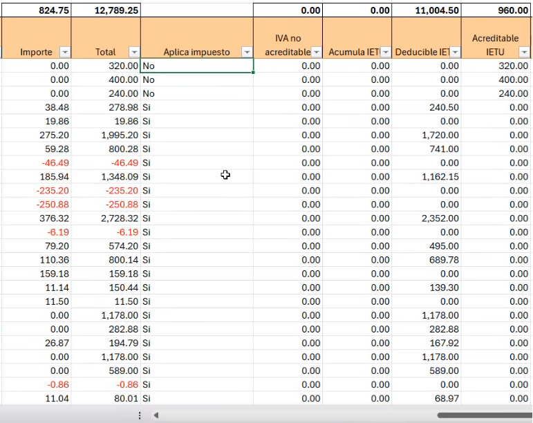 Como puedes ver, en la parte superior de las columnas de importes, se cuenta con un registro con los totales correspondientes a dichos importes:
