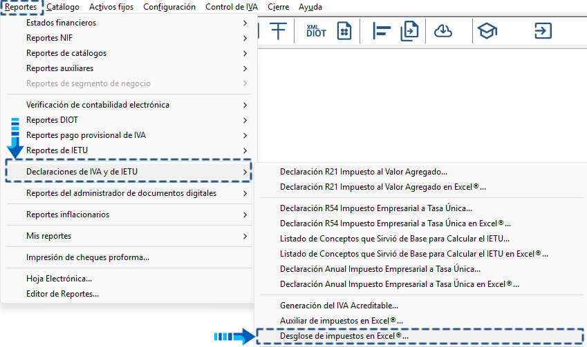 Reporte Desglose de impuestos en Excel®