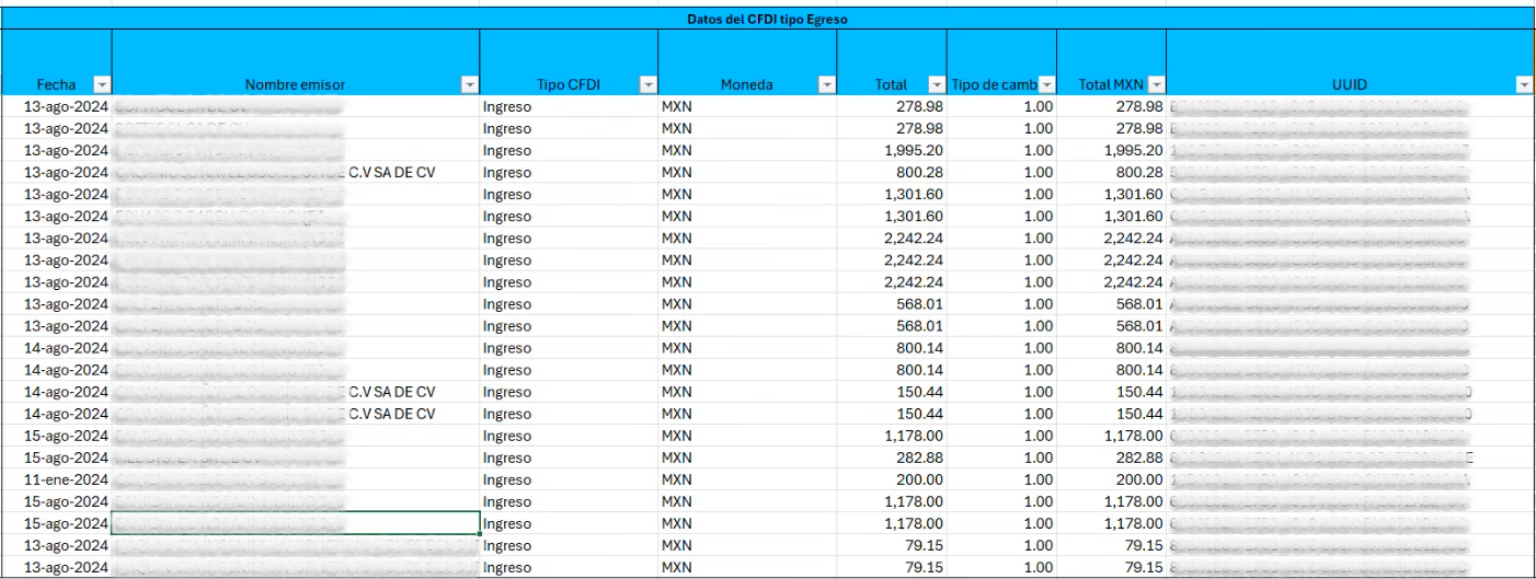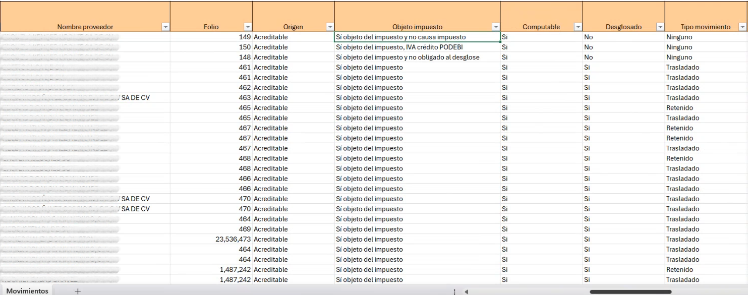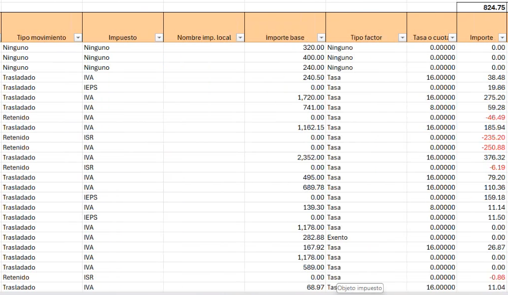 Y las últimas columnas del reporte corresponden a toda la información que tenemos sobre el desglose de impuestos.