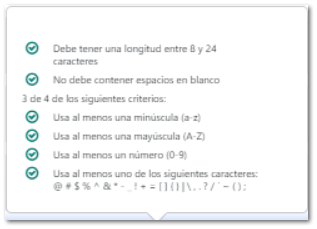 ¤ Debe tener una longitud entre 8 y 24 caracteres.