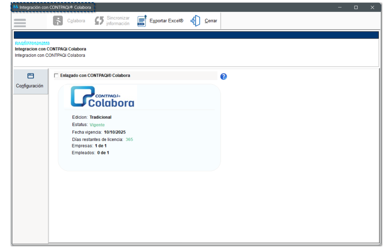 Al finalizar el proceso, se mostrará el módulo Integración con CONTPAQi® Colabora.