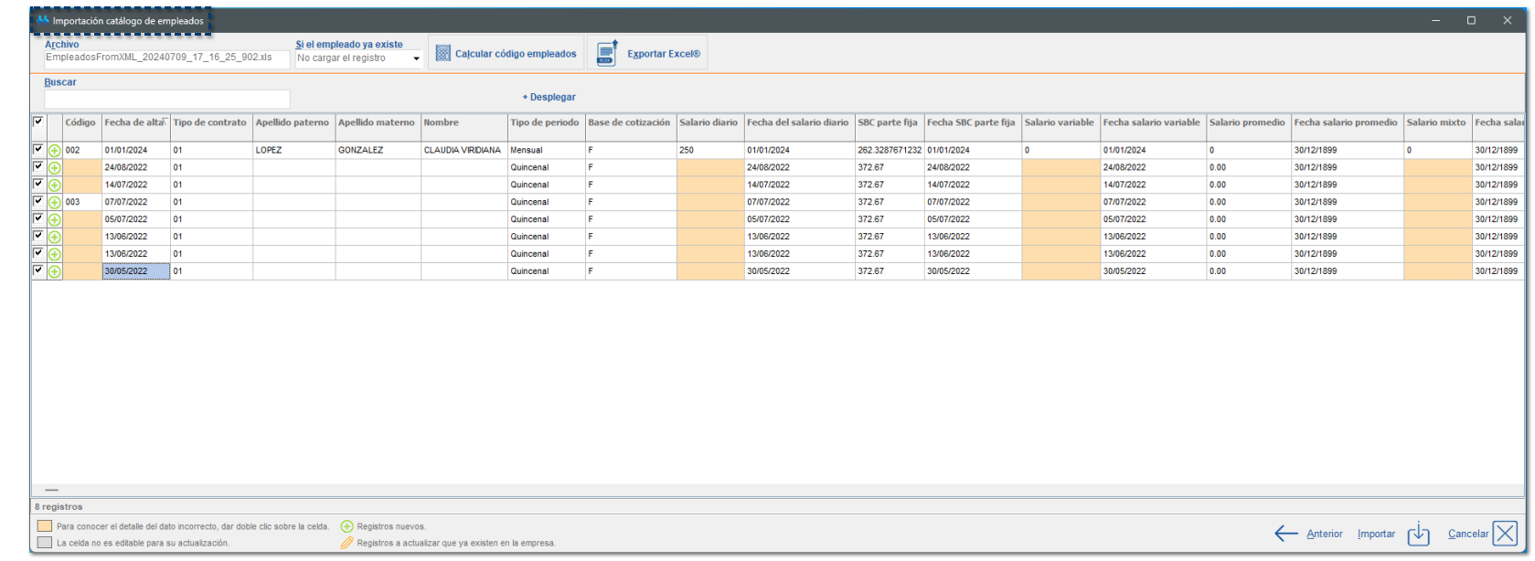 En la BITÁCORA DE IMPORTACIÓN DE EMPLEADOS podrás visualizar la siguiente información: