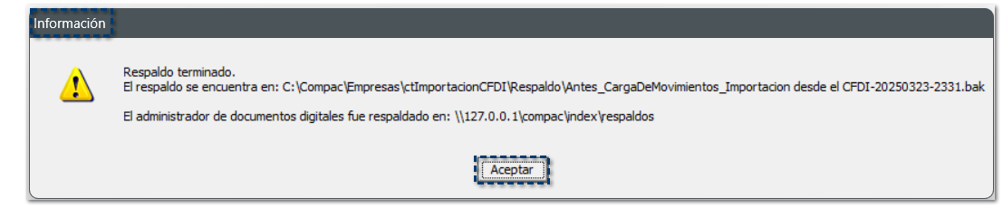 Se mostrará un mensaje de confirmación que nos indica que se ha realizado un respaldo de la empresa.