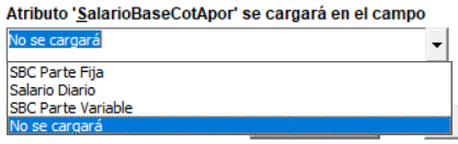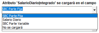 Se mostrará el listado de opciones para elegir a qué campo del catálogo de Empleados va a mandar los atributos que está leyendo de los XML en los atributos de SalarioBaseCotApor: